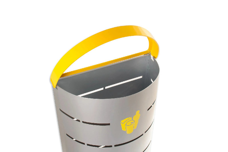 La poubelle publique Arco est fabriquée en métal, elle peut être installée dans tous les lieux publics. Son design a été étudié pour la rendre basculante, ce qui facilite le vidage. Cette poubelle en métal répond aux normes de production françaises et peut être intégrée dans tous les e