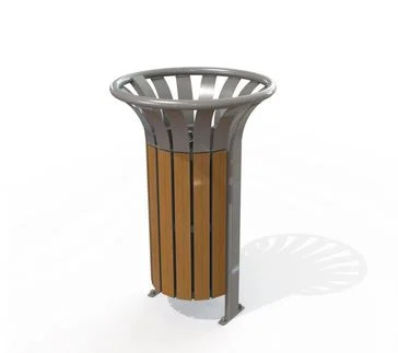 Une corbeille au design élégant avec son ouverture évasée - . Structure en acier galva peint et habillage lames en stratifié compact - . Hauteur totale : 927 mm - . Diamètre : 675 mm - . Contenance : 60 litres - . Fixation au sol : à boulonner - . Bac intérieur en tôle d'acier galvanisé avec s