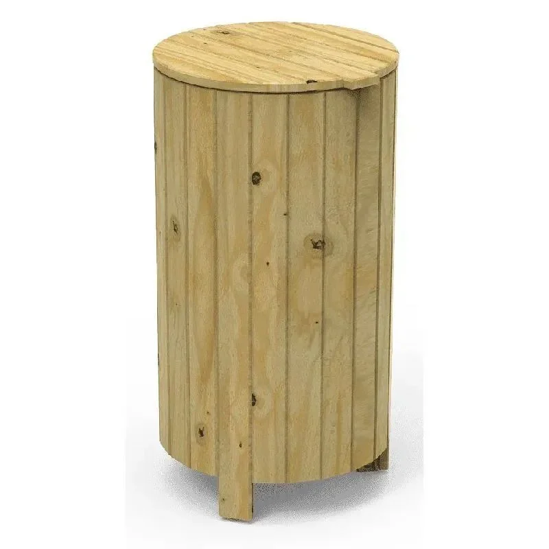 Corbeille en bois de pin avec traitement autoclave vide et pression classe IV contre les vrillettes, termites et insectes. - Finition : teinte naturelle. - Visserie : en acier inoxydable. - Ancrage recommandé : au moyen de trois boulons à expansion M8 en fonction de la surface et du projet.