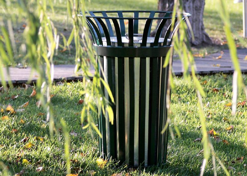 Corbeille Ville d'Auxerre - Fonctionnalité et robustesse sont les principaux atouts de cette corbeille de style. - Ossature : Acier laminé de forte épaisseur. - Cercle supérieur et ceinture intermédiaire : Assurent une finition parfaite et une solidité éprouvée. - Socle : En tôle acier,