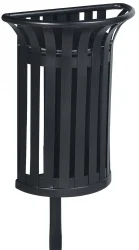 La corbeille 35L TULIPE se fixe sur tous nos poteaux COLLEC 1 ou 2 flux ainsi que sur les bornes hygiène canine. A la fois esthétique et intemporelle,. - Acier traité anti - corrosion et poudré anti - UV. - Epaisseur des lattes d'acier renforcée. - Support sac intérieur. - Bride de fixatio