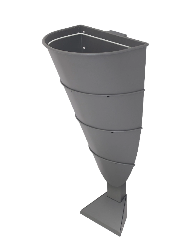 Poubelle semi - circulaire pouvant être utilisée seule ou formant des stations de recyclage - Capacité de 40 litres - Système de collecte : anneau de garniture qui cache l'excédent du sac. - Identification des déchets par la couleur de la bague de garniture et une icône sur le corps - Doit être