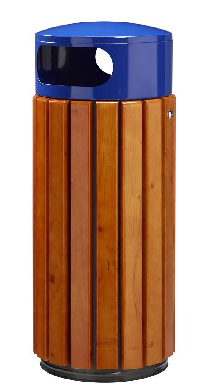 Corbeille ZENO 40 à 60 Litres à poser ou fixer - Bois / Bleu