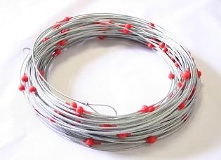 Câble en acier tressé à marquage par boule en plastique rouge fixées tous les 50 cm.