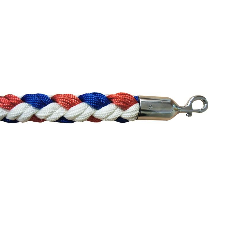 Cordon tressé avec mousqueton acier - Bleu/Blanc/Rouge / Chrome