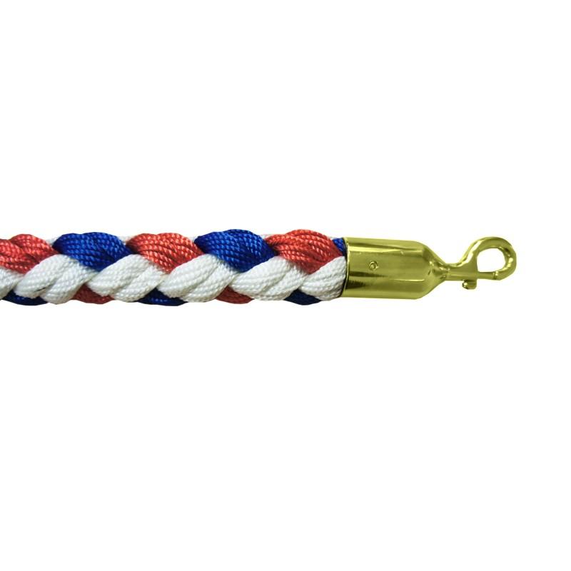 Cordon tressé avec mousqueton acier - Bleu/Blanc/Rouge / Laiton