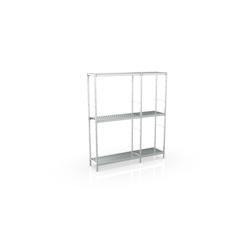 Rayonnage linéaire 3025x1670x500 3 niv - Spécialement conçu pour usage alimentaire - Structure aluminium anodisée - Clayettes en polyéthylène qualité alimentaire - Vis en acier inoxydable - Compatible à une utilisation en chambres froides, à la fois pour des températures positives com