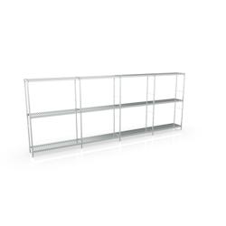 Rayonnage linéaire 4560x1370x500 3 niv - Spécialement conçu pour usage alimentaire - Structure aluminium anodisée - Clayettes en polyéthylène qualité alimentaire - Vis en acier inoxydable - Compatible à une utilisation en chambres froides, à la fois pour des températures positives com