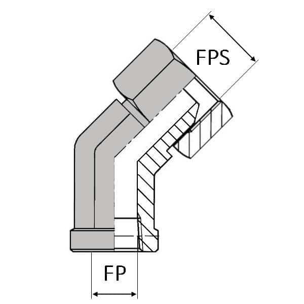 Coude 45° femelle NPT x femelle tournant NPSM (cylindrique) - Cône 60° - 3/4' , 23.12 , 3/4' , 23.12
