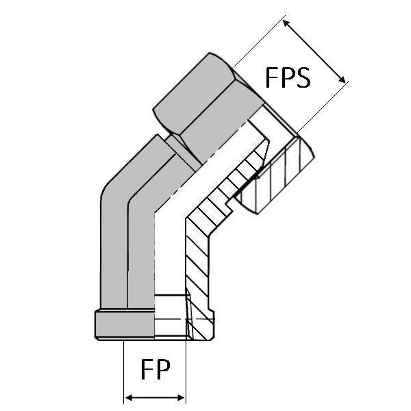 Coude 45° femelle NPT x femelle tournant NPSM (cylindrique) - Cône 60° - NPT-CFFNPSM40202 - Ø FP 1/8' - Ø FPS 1/8'