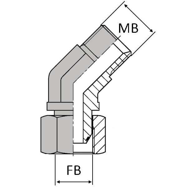 Coude 45° mâle BSP x femelle tournant BSP - 1/4' , 11.44 , 1/4' , 13.15