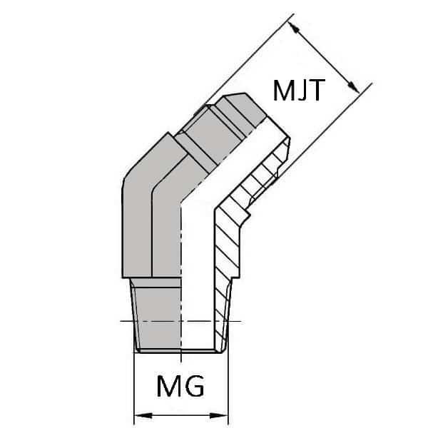 Coude 45° mâle gaz conique x mâle JIS Toyota® - 3/4' , 26.44 , 3/4' , 26.44