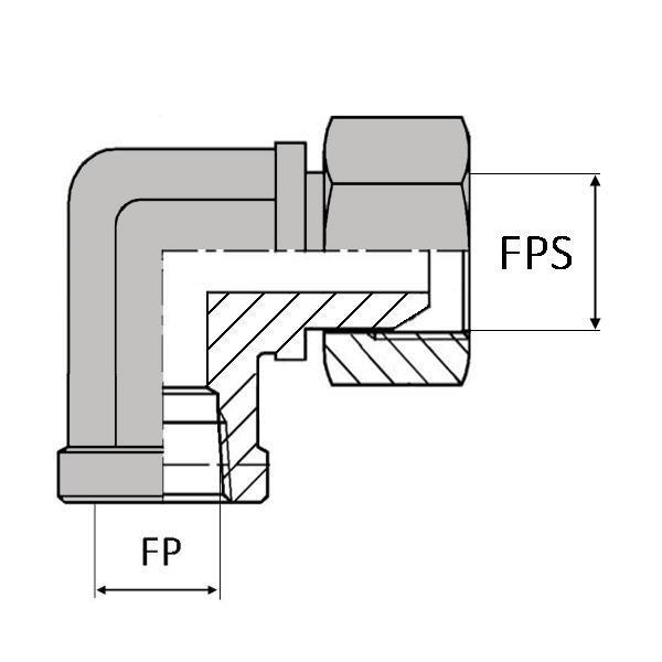 Coude 90° femelle NPT x femelle tournant NPSM (cylindrique) - Cône 60° - NPT-CFFNPSM90202 - Designation CFNPT1/8 / FNPSM1/8