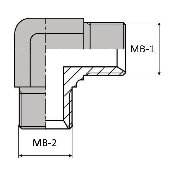 Coude 90° mâle BSP x mâle BSP - BCM9000202 - CMBSP 1/8 90 - Ø MB-1 9.72 mm - Ø MB-2 9.72 mm