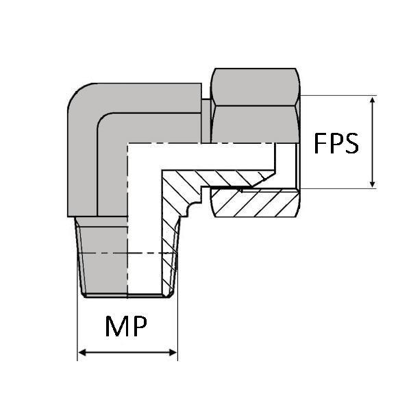 Coude 90° mâle NPT X femelle tournant NPSM (cylindrique) - Cône 60° - NPT-CMFNPSM90202 - Ø MP 1/8' - Ø FPS 1/8'