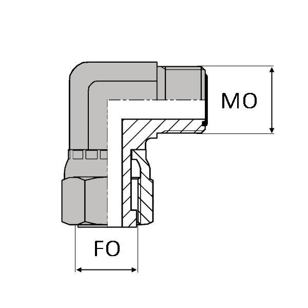 Coude 90° mâle ORFS x femelle tournant ORFS - CMFORFS 9/16 90 - Ø 9/16'