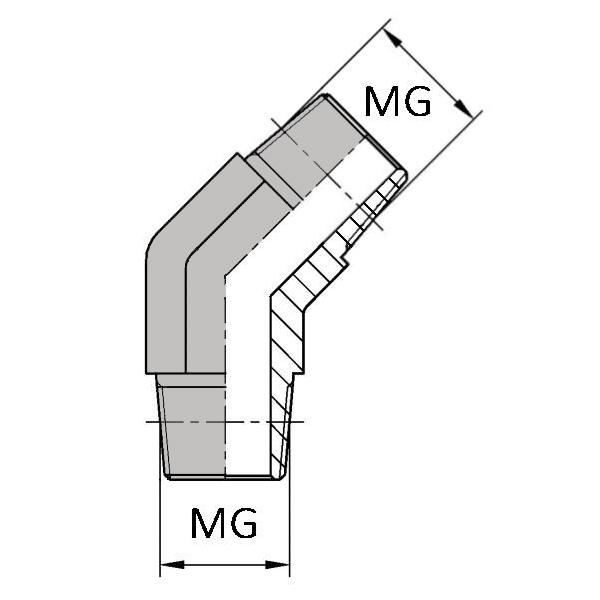 Caractéristiques : - DESIGNATION : CMGCO1/4 / MTO (JIS)1/4 45 - Ø MG (inch) : 1/4' - Ø MG (mm) : 13.15 - Ø MJT (inch) : 1/4' - Ø MJT (mm) : 13.15