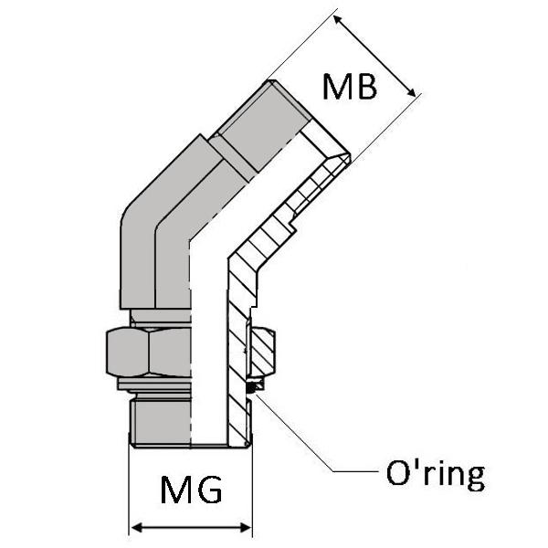 Coude orientable mâle BSP x mâle gaz cylindrique 45° - CMBSP1/4 / MGCY 1/4 JOR 45 - Avec joint o'ring et bague anti-extrusion