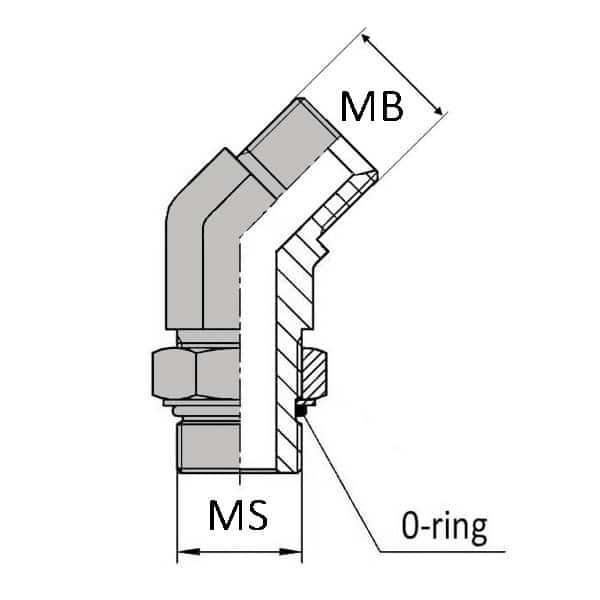 Coude orientable mâle BSP x mâle SAE 45° - 1/2' , 20.95 , 7/8' , 22.22