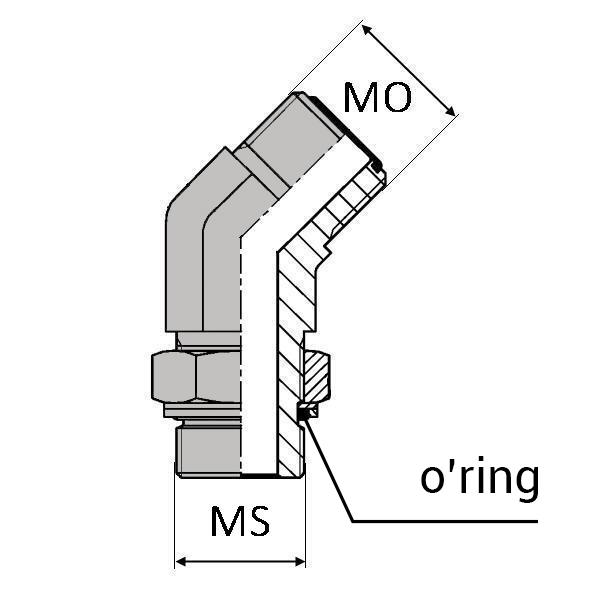 Caractéristiques : - DESIGNATION : CMJ7/16 / MSAE7/16 45° JO - Ø FJ (inch) : 7/16' - Ø FJ (mm) : 11.11 - Ø MS (inch) : 7/16' - Ø MS (mm) : 11.11 - USP 1 : Avec joint o'ring -