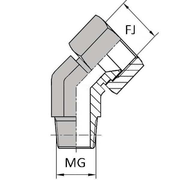 Coudes - 45° femelle tournant JIC - X mâle gaz conique -Cône 60° - 9/16' , 12.76 , 3/8' , 16.66