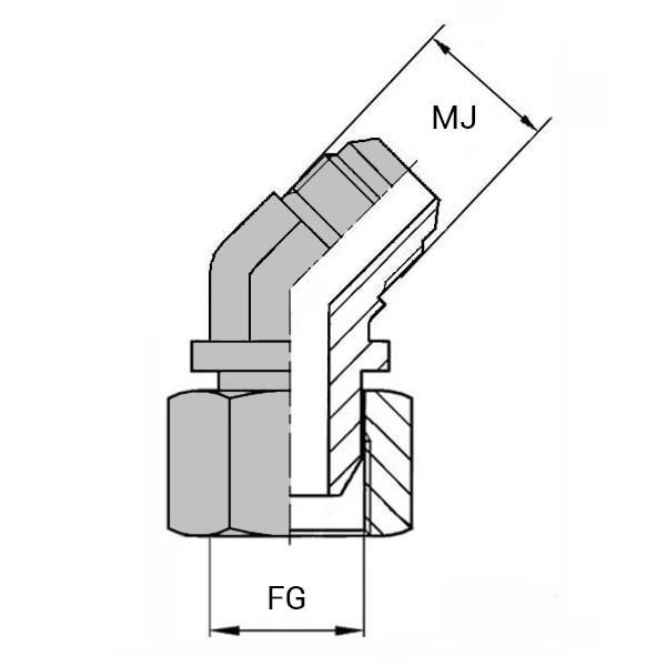 Caractéristiques : - DESIGNATION : CFJ7/16 / MGCO1/4 45 - Ø FJ (inch) : 7/16' - Ø FJ (mm) : 9.71 - Ø MG / FG (inch) : 1/4' - Ø MG / FG (mm) : 13.15 -