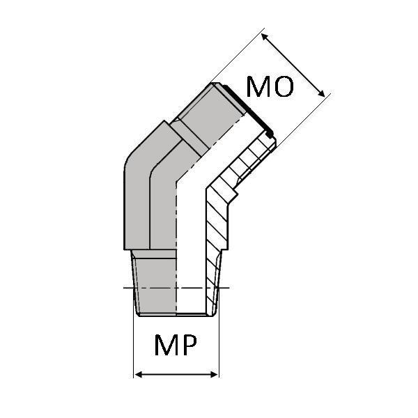 Caractéristiques : - DESIGNATION : CMFNPT 1/8 45 - Ø FP (inch) : 1/8" - Ø FP (mm) : 8.48 - Ø MP (inch) : 1/8" - Ø MP (mm) : 10.24