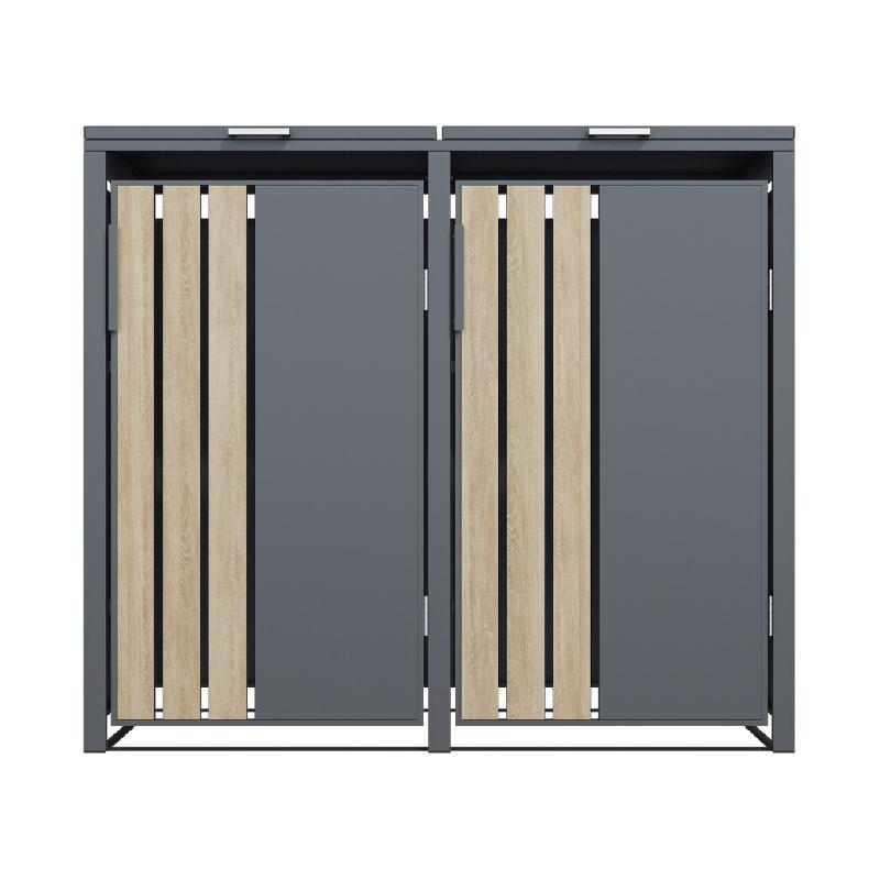 COULEURS DU MONDE Abri poubelles 2 bacs – Gris et imitation bois en acier galvanisé - gris acier 3700263329494
