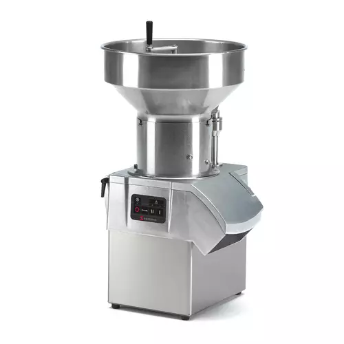 Equipé d'un trémie automatique de série, le coupe - légumes TR210, à poser sur une table, vous permettra de couper vos fruits et légumes en grande quantité. Les différentes trémies en option vous offriront la flexibilité d'adapter votre machine à vos besoins. Ce coupe - légumes permet de