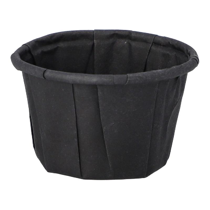 Coupelles pour sauce à salade en papierCARACTÉRISTIQUES DU PRODUIT : - Diamètre : 5,8 cm - Hauteur : 3,5 cm - Contenance : 50 ml - Matière : papier - Couleur : noir - Epaisseur : 80 g/m² - Température d'utilisation maximale : 0°C à 100°C - Passe au micro - ondes (max 2,5 minutes)PRODUIT STA