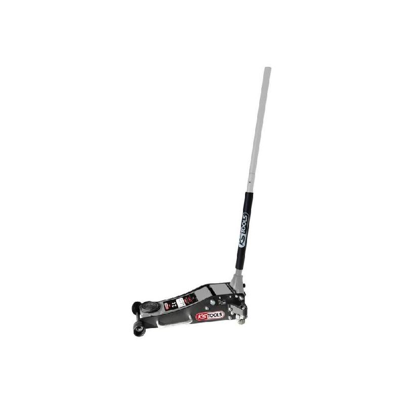 Description | Cric hydraulique extra - bas aluminium 2T - KS Tools | 161.0365 - Caractéristique technique référence KS Tools : 161.0365 - Coupelle en inox : pratique lors du démontage de visseries et d'écrous - Pompe hydraulique à double piston - Aluminium 65% et acier 35% - Deux roues
