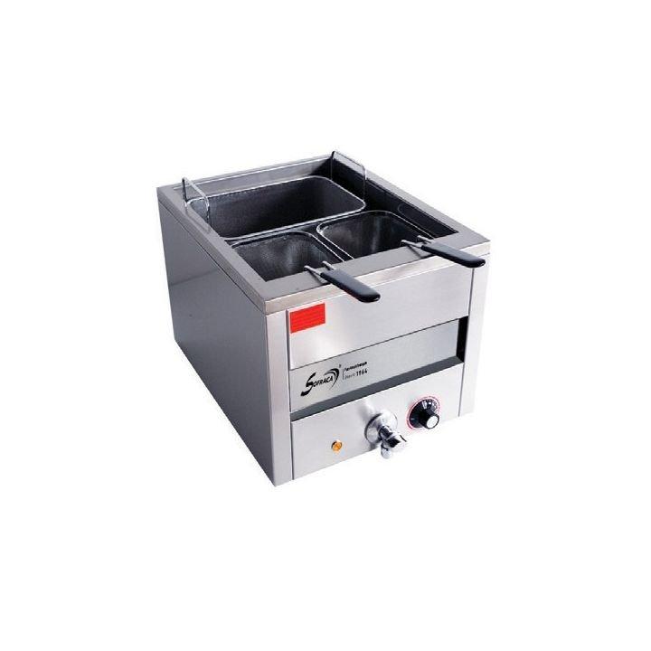 - Acier inoxydable AISI 304 - Cuve en acier inoxydable AISI 430 - Capacité de la cuve : 8 litres - Dimensions de la cuve : L 240 x P 300 x H 200 mm - Résistance en incoly 820 - Température : 30°C - 110°C - Thermostat de sécurité - Puissance : 3 400 W / 230 V - Dimensions : L 270 x P
