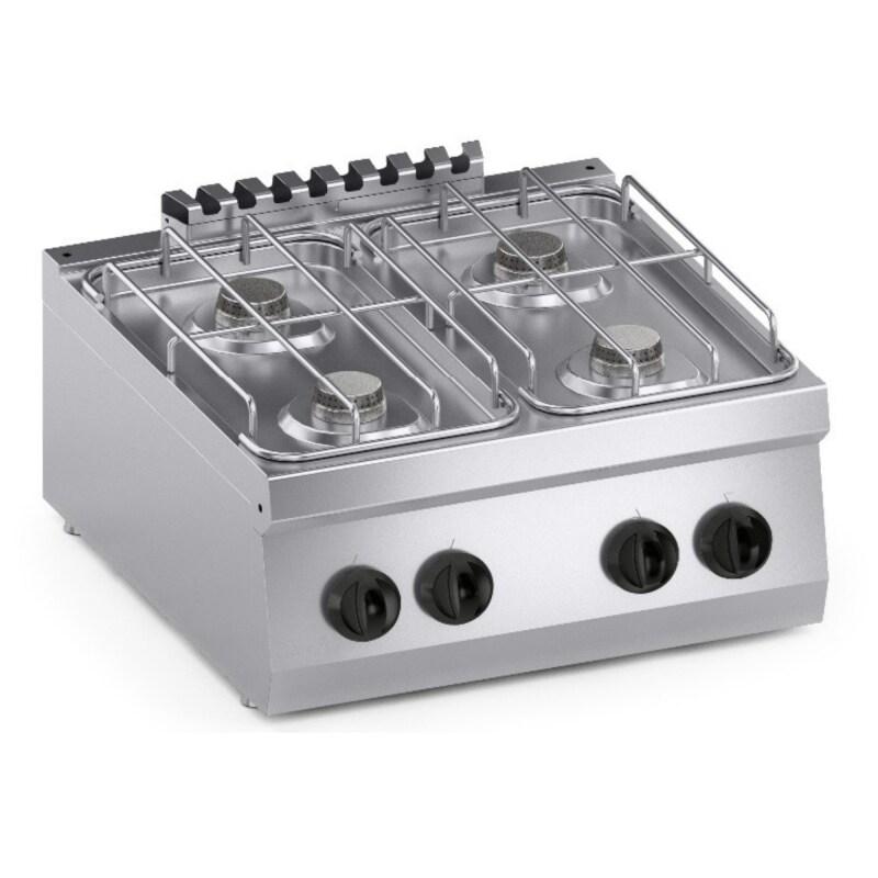 7178.0205 - Cuisiniere professionnelle a gaz 4 bruleurs à poserDimensions (LxPxH) (mm) : 800x700x300Puissance Gaz (kW) : 4x 6,5Nombre de feux : 4.0