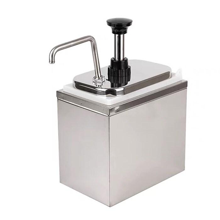 Distributeur de sauce professionnel d'une capacité de 2 litres, équipé d'une pompe doseuse pour un service rapide et précis. Idéal pour buffets, restaurants et cuisines collectives. structure robuste avec support en inox pour une utilisation stable et hygiénique. Facile à remplir et à nettoy