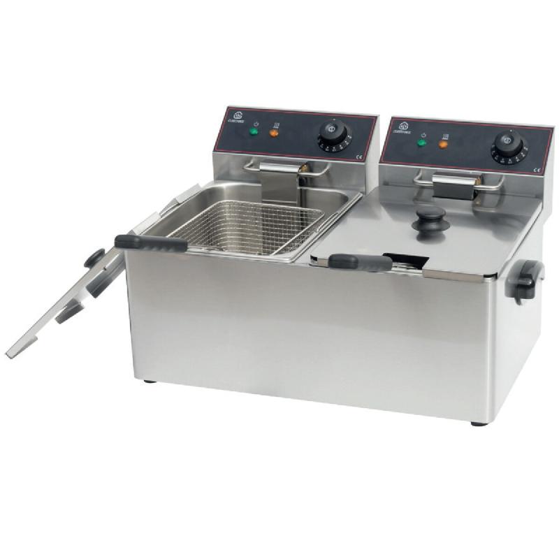 Friteuse électrique professionnelle sur table double cuve 2×8 L idéale pour la restauration, snack, food‑truck ou service intensif. Construite en acier inoxydable robuste pour une durabilité maximale en environnement CHR. Chaque cuve est équipée d'un thermostat réglable de 50 °C à 190 °C pour une cuisson précise des frites, beignets, poissons ou snacks. Les indicateurs lumineux assurent une lecture facile de la mise en chauffe. Compacte et puissante avec 2×3250 W, elle permet une montée rapide en température et un rendement élevé même en période de rush. Ses paniers grande capacité facilitent la friture simultanée sur deux zones. Facile à intégrer sur plan de travail, cet appareil répond aux besoins des professionnels exigeants.