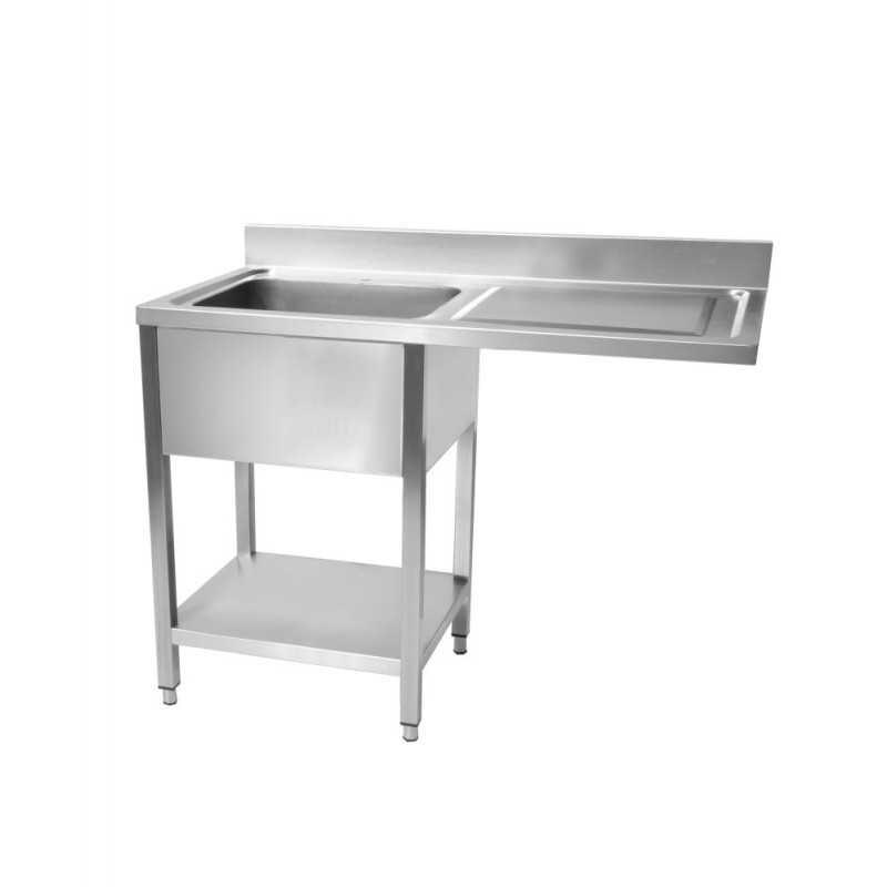 Bacs de plonge et égouttoir en inox (AISI304) - Piètement en inox (AISI201) - Passage lave vaisselle à gauche (L=600 mm) - 1 bac de plonge - Plonge insonorisée avec bords anti - ruissellement - Égoutoir nervuré - Dosseret plat (100 x 20 mm) - Pieds carrés avec vérins ajustables sur 30