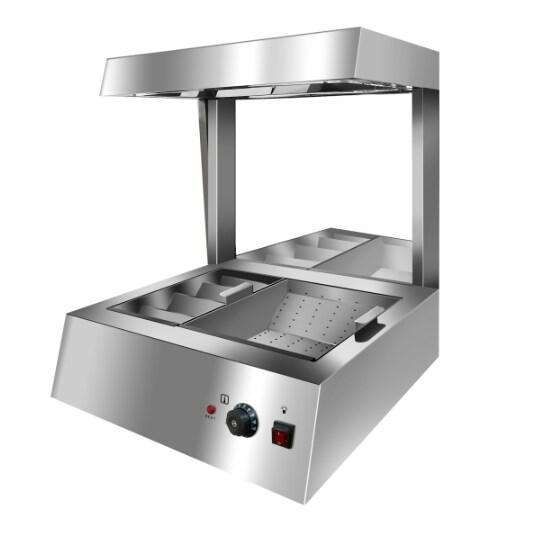 Chauffe - frites - SKU: BWK80 - Exécution - Présentation et chauffage des frites - Utilisation simple - La lumière multicolore permet une présentation de haute qualité - Isolation en fibre de verre - Maintien de la chaleur à infrarouge - Des pieds en caoutchouc assurent stabilité et s