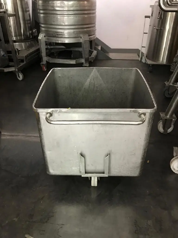 Carré en acier inoxydable. D'une capacité de 200 litres. Sur 3 roues pour une plus grande mobilité.