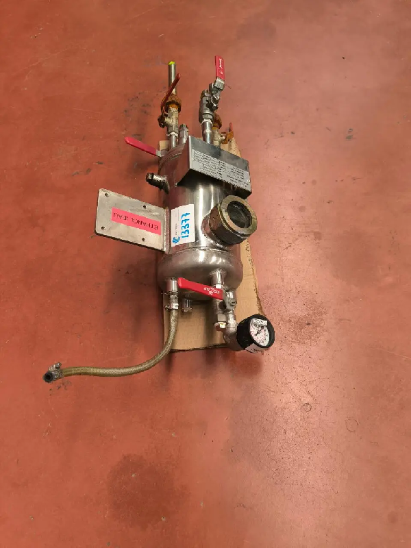 Cuve de chaudière en acier inoxydable d'une capacité de 12 litres. - Corps - Pression de service : 16 bar - Température de service : 200°C - Capacité - Capacité totale : 12 L - Matériel - Acier inoxydable - Caractéristiques techniques - Année de fabrication : 1995 - État - Dans
