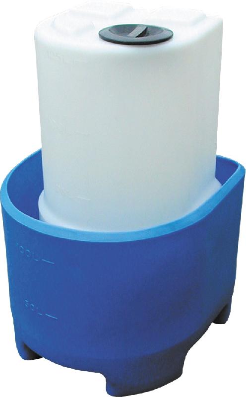 Cuve de dosage cylindrique avec couvercle à visser et bac de rétention de 60 l à 250 l