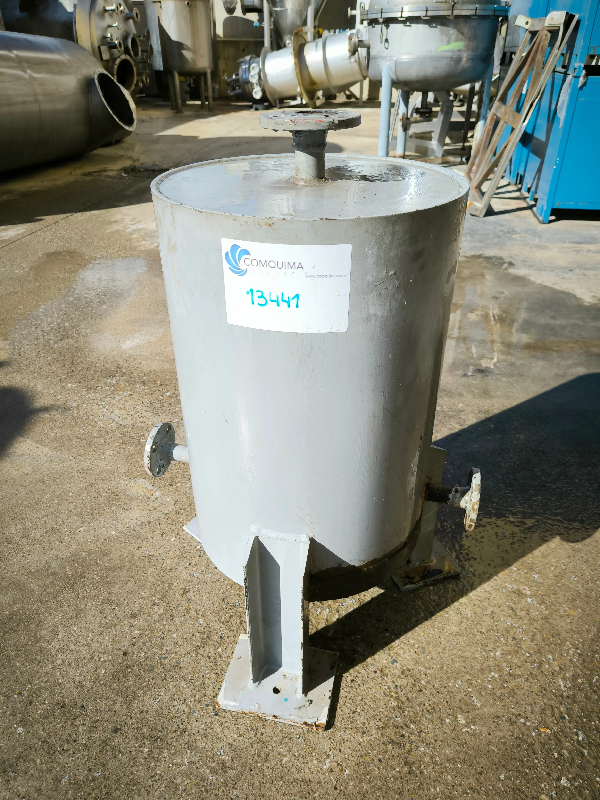 Réservoir vertical en acier inoxydable. - Fond plat avec 4 brides de raccordement DN40. Trou d'homme de 385 mm de diamètre intérieur. - Niveau latéral visible avec brides DN20. Raccordement inférieur DN80. - Fond conique avec sortie centrale DN40. - Sur 4 pieds. - Matériel - Acier inoxyd