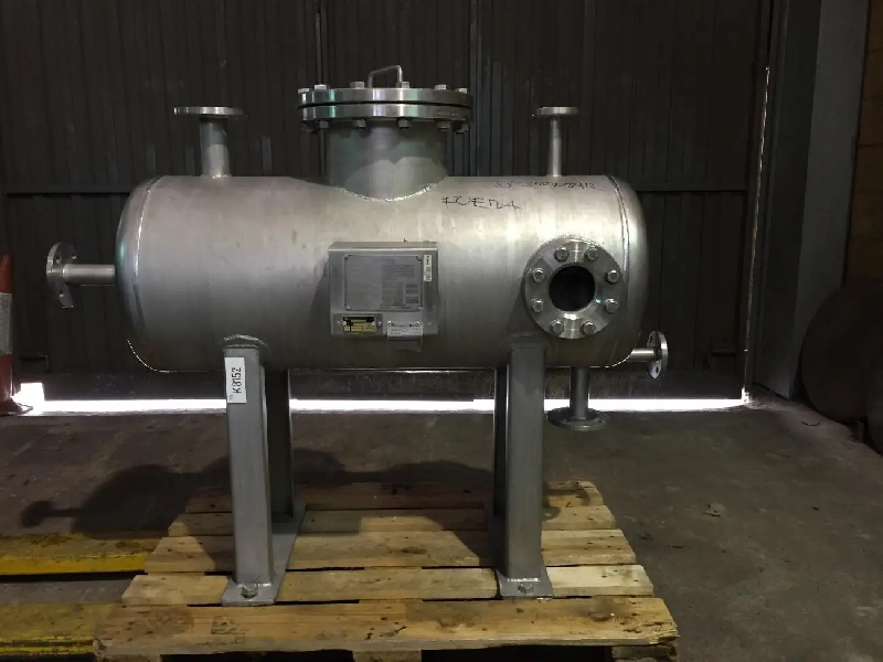 Réservoir accumulateur de condensats vertical en acier inoxydable d'une capacité de 100 litres.Fond supérieur : Klopper avec raccords à bride. - Fond inférieur : Klopper avec décharge par le bas. - Support : Sur 4 pattes.Volume : - Capacité totale : 100 L - Matériel : - Acier inoxydable