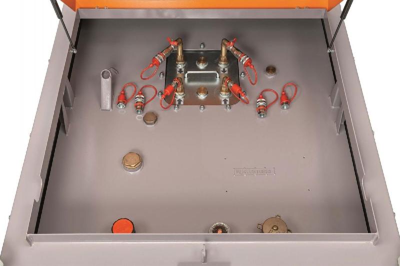 Disponible en 1 000 L et 1 500L - Construites en acier, ces unités offrent une solution extrêmement sûre et sécurisée pour stocker le carburant. - Base en acier galvanisé à basse pression au sol avec passage de fourches. - Poignée de maintien robuste avec protection en acier, ainsi qu'un
