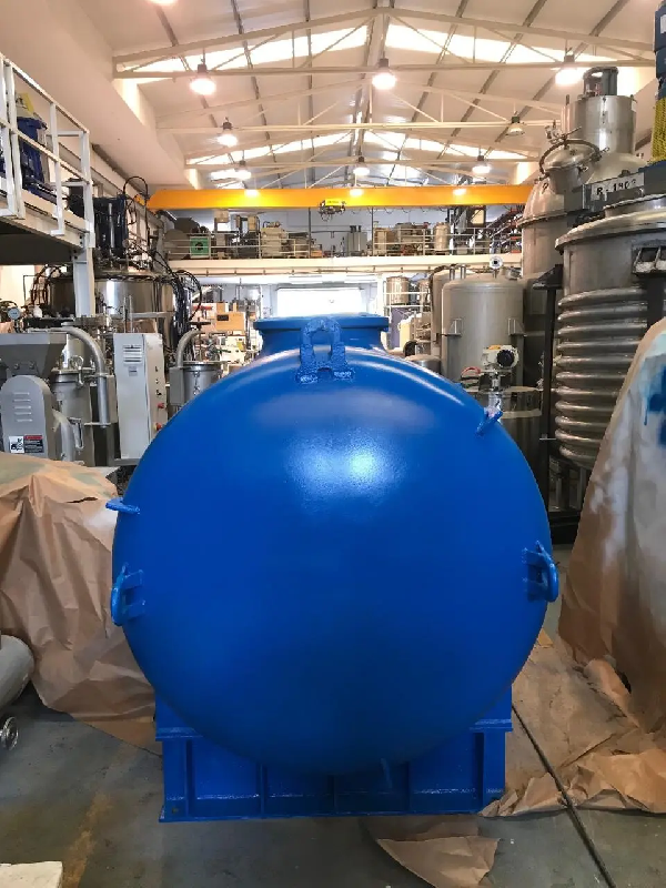 Cuve horizontale fabriquée par DE DIETRICH d'une capacité de 2 700 litres avec intérieur émaillé. Avec 3 oreilles de surélévation sur chaque fond, trou d'homme en haut et deux décharges en bas des fonds. Monté sur 2 berceaux Corps Pression de service 3 bar Pression d'essai 4,5 bar Capacité totale 2 700 l Température de calcul 200 ºC Dimensions de transport :Longueur total : 2 300 mm Hauteur totale : 1 800 mm Largeur totale : 1 500 mm