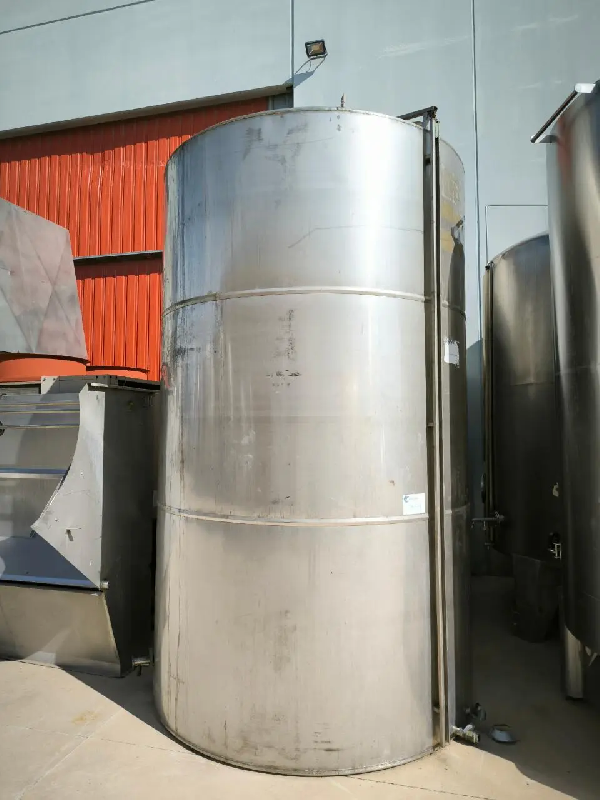 Cuve en acier inoxydable d'occasion d'une capacité de 12 000 litres. Avec connexions latérales. Sans documentation.