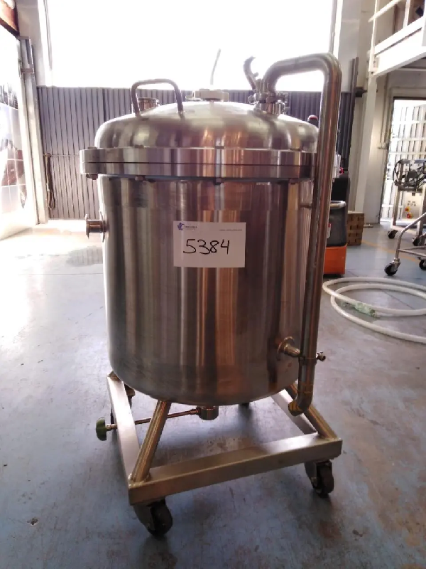 Cuve verticale en acier inoxydable d'un volume de 160 litres. - Caractéristiques : - Volume : 160 L - Matériel : Acier inoxydable - Fond plat - Sur 3 roulettes avec deux poignées - Dimensions : - Hauteur de la virole : 530 mm - Hauteur totale : 700 mm - État : Dans son étatInformations