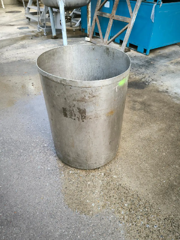 Cuve en acier inoxydable d'une capacité totale de 200 litres - Caractéristiques : - Sans sortie en bas - Sans documentation - Dimensions : - Diamètre intérieur : 585 mm - Hauteur de la virole : 760 mm - Informations pour le transport : - Largeur : 590 mm - Hauteur : 820 mm - État : Da