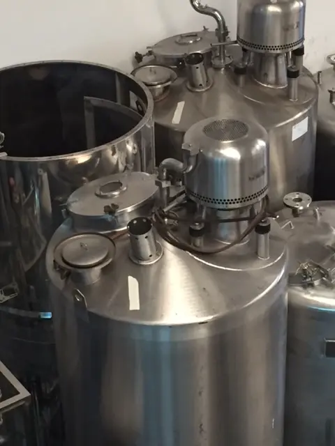 Cuve à liqueur mère d'occasion en acier inoxydable 316. - Volume - Capacité totale: L - Matériel - Acier inoxydable 316/316L - Caractéristiques techniques - Année de fabrication: 1995 - Pression de service du corps: ATM bar - Température de service du corps: AMB °C - Dimensions - H
