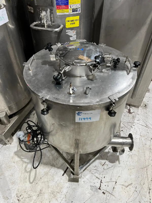 Cuve fabriquée par BACHILLER en acier inoxydable d'une capacité de 1 146 litres. Fond inférieur Klopper avec décharge par le bas. Sur 3 pattes. CORPS Pression de conception ATM Pression d'essai Étanche < /tr> Température de conception 85°C Capacité 1 146 L - Référence : C8