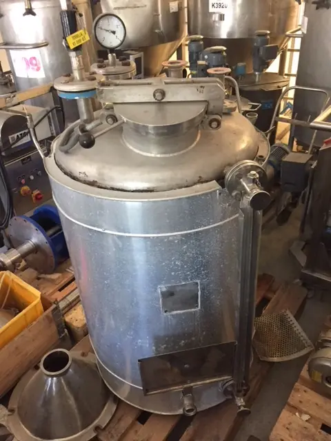 Cuve en acier inoxydable d'une capacité de 1000 litres.Fonds supérieur et inférieur : Klopper.Décharge : par le bas.Avec cartouches.Volume - Capacité totale : 1000 LMatériel - Acier inoxydable 316/316LCaractéristiques techniques - Année de fabrication : 1985Fond supérieur : KlopperFond i